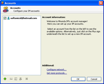 Miranda IM doet het goed als spartaanse chatter. De belangrijkste protocollen zijn aanwezig en er is geen knop teveel in de applicatie aanwezig. Wel waarschuwen we voor het feit dat je naar sommige functies moet zoeken. Na het toevoegen van een account moet je bijvoorbeeld in het menu 'Accounts' (klik hiervoor op het bloem-pictogram bovenin de applicatie) niet vergeten het wachtwoord van een account in te voeren. Sla je deze stap over dan werkt Miranda IM simpelweg niet.
